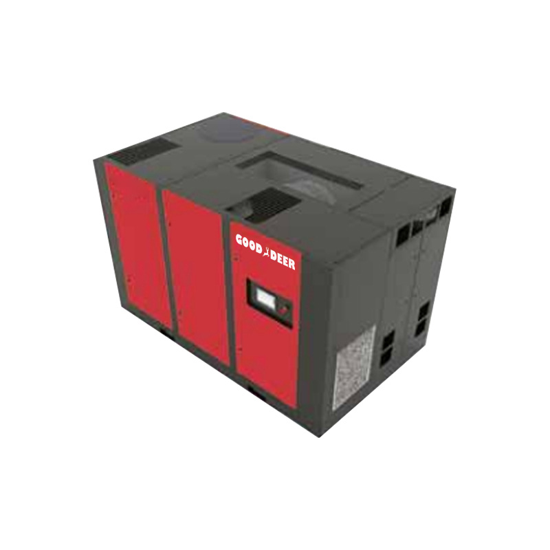 El compresor de aire de tornillo giratorio con inversor de frecuencia variable es un dispositivo que ajusta la velocidad del compresor mediante tecnología de conversión de frecuencia. Tiene importantes ventajas como ahorro energético, estabilidad y bajo nivel de ruido. El dispositivo se utiliza ampliamente en procesos de producción industrial para proporcionar fuentes de aire eficientes y estables para las líneas de producción. En comparación con los compresores tradicionales de velocidad fija, los compresores de frecuencia variable ajustan la velocidad del motor a través del inversor para ajustar automáticamente el estado operativo de acuerdo con la demanda de flujo de aire. Cuando la carga es ligera, la tecnología de conversión de frecuencia puede reducir la velocidad del motor, reduciendo así el consumo de energía; cuando la carga aumenta, la velocidad del motor aumenta automáticamente para garantizar que se satisfaga plenamente la demanda de flujo de aire. La unidad de compresión del compresor de aire de tornillo giratorio con inversor de frecuencia variable adopta tecnología de tornillo avanzada. La parte de tornillo del compresor consta de tornillos macho y hembra mecanizados con precisión, que logran una compresión continua del gas al engranarse entre sí. En comparación con los compresores de pistón, los compresores de tornillo funcionan con mayor suavidad, con menos fricción y menor pérdida de energía. La superficie del tornillo está especialmente recubierta con una mayor resistencia al desgaste y puede funcionar de forma estable y durante mucho tiempo en condiciones de alta presión.